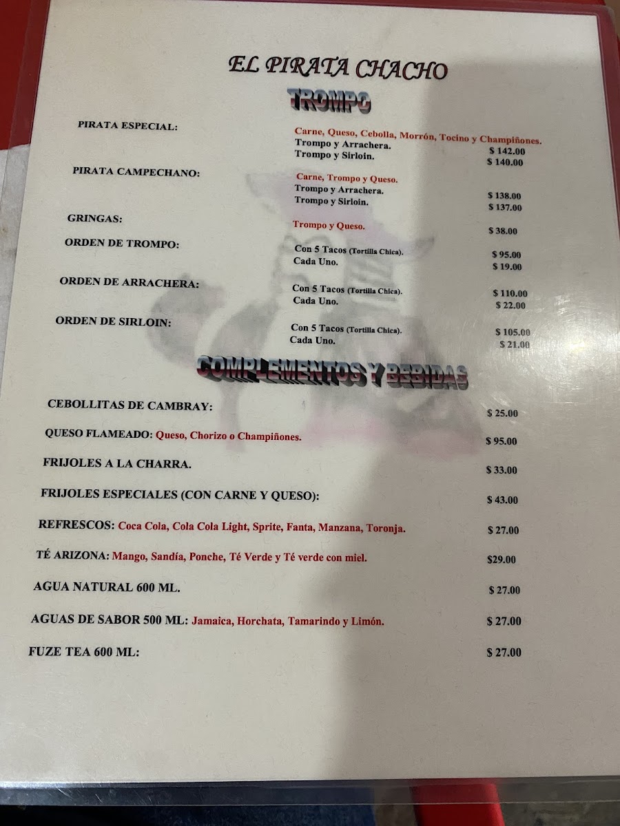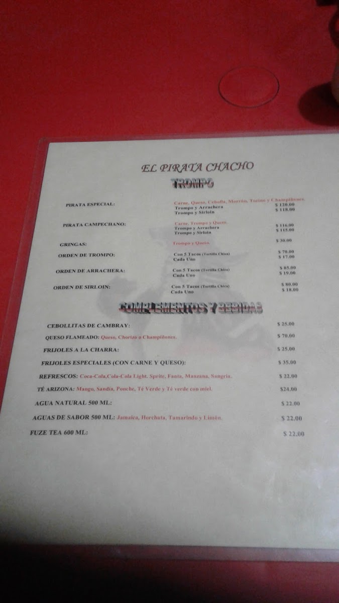 Don't forget to try their refreshing beverages like the Fuze Tea and CocaCola, all priced at an approachable MX$39.00. With fast service and a fully stocked accessory bar, El Pirata Chacho promises a memorable dining experience, whether you're a taco aficionado or a casual diner.